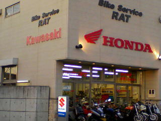 駐車場はバイクサービス工場から